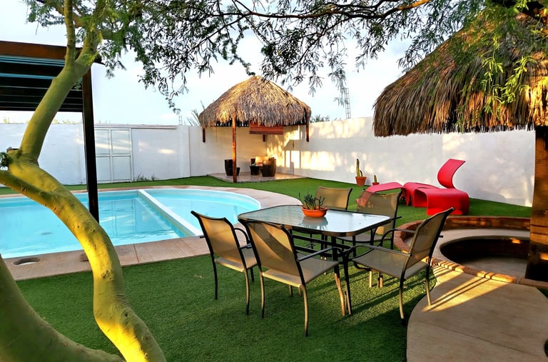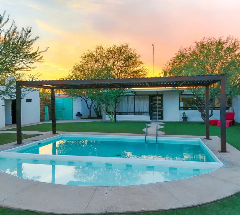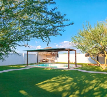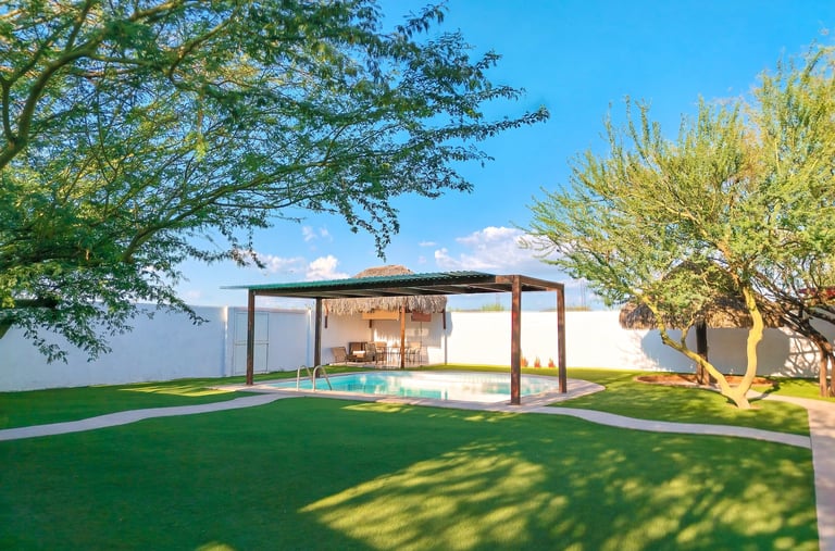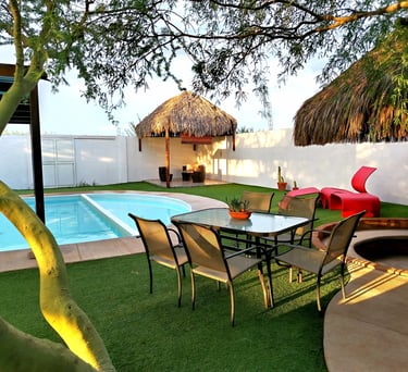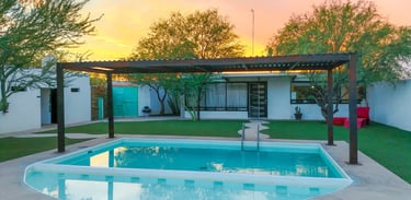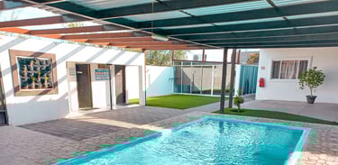 Disfruta de una estancia inolvidable en esta pequeña pero acogedora casa familiar con capacidad hasta para 12 personas, equipada con alberca, asador y todas las comodidades para unas vacaciones perfectas en Hermosillo con tu familia.